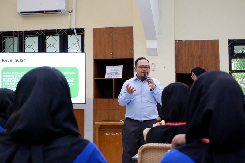 Sementara, Ketua Prodi Bisnis Digital S-1, Dr. Agung Panji Sasmito, S.Pd., M.Pd., secara langsung memberikan informasi lengkap tentang profil prodi, dan potensi karir lulusan. “Siswa juga mendapat materi yang disampaikan oleh dosen, mahasiswa, dan alumni,” ujarnya.