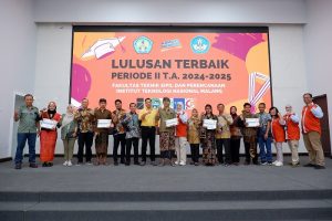 Lulusan terbaik FTSP ITN Malang (tengah) diapit oleh Rektor ITN Malang Awan Uji Krismanto, ST., MT., Ph.D., dan...