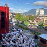 Terlihat dari atas. Indahnya momen salat Idulfitri 1447 H di halaman Rektorat Kampus 1 ITN Malang. (Foto:...