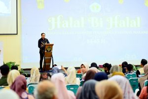 Rektor ITN Malang, Awan Uji Krismanto, ST., MT., Ph.D memberi sambutan pada acara Halalbihalal Keluarga Besar ITN...